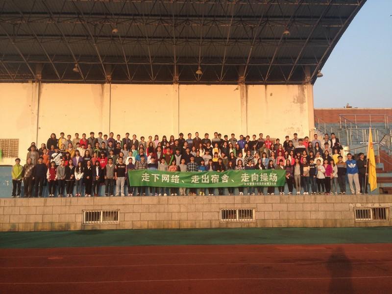 11月3日晚,在學(xué)校東廣場觀看了電影《一個人的奧運》,拉開了體育文化周的序幕。次日早上,一支由分院各班學(xué)生代表200余人組成的隊伍在分院領(lǐng)導(dǎo)帶領(lǐng)下,在校園內(nèi)開展了“走下網(wǎng)絡(luò)、走出宿舍、走向操場”的跑步活動,學(xué)院學(xué)生處負(fù)責(zé)人到場指導(dǎo)。