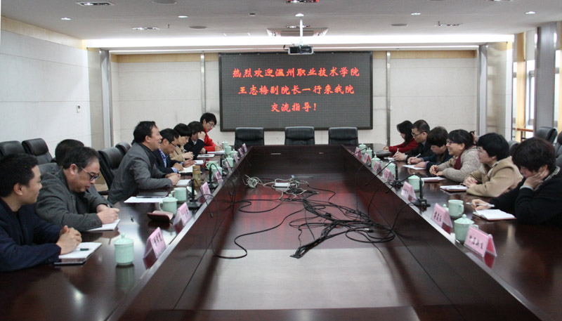 3月27日,溫州職業(yè)技術(shù)學(xué)院王志梅副院長(zhǎng)一行7人來我院考察。學(xué)院院長(zhǎng)梁偉樣、副院長(zhǎng)劉克勤及相關(guān)部門負(fù)責(zé)人接待了來訪人員,并在801會(huì)議室召開了座談會(huì)。