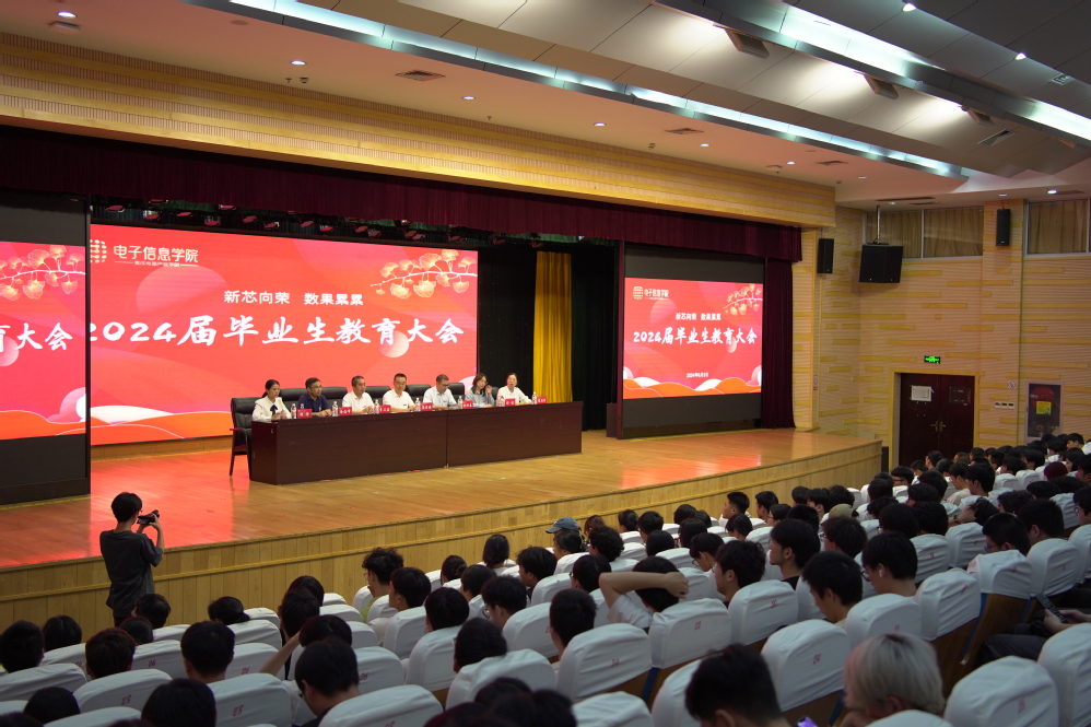 ? ?6月3日下午,電子信息學(xué)院隆重舉行2024屆畢業(yè)生教育大會(huì)暨畢業(yè)證頒發(fā)儀式。校黨委委員、副校長(zhǎng)湯書(shū)福,電子信息學(xué)院全體教職工及學(xué)院2024屆畢業(yè)生參加本次大會(huì)?;顒?dòng)由黨總支書(shū)記祝迎春主持。
