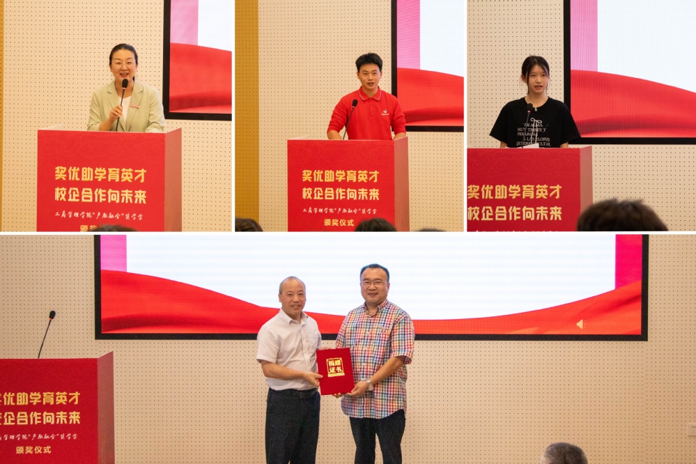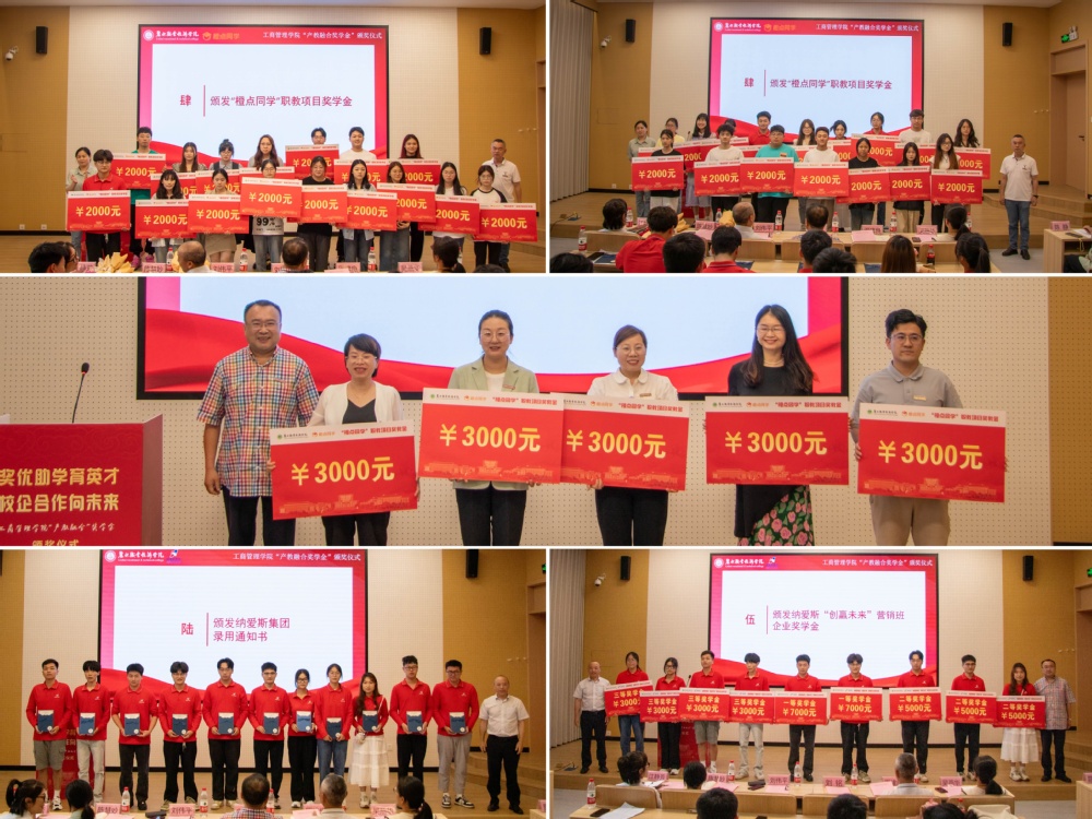 為表彰在“創(chuàng)贏未來”營(yíng)銷班和“橙點(diǎn)同學(xué)”實(shí)戰(zhàn)訓(xùn)練營(yíng)中表現(xiàn)卓越的學(xué)生和教師,進(jìn)一步激勵(lì)在校師生積極參與校企合作項(xiàng)目和訂單班實(shí)踐,提升產(chǎn)教融合的社會(huì)影響力,并展現(xiàn)校企合作的豐碩成果,工商管理學(xué)院于5月31日下午在南三階梯教室隆重舉行了“產(chǎn)教融合獎(jiǎng)學(xué)金”頒獎(jiǎng)儀式。校黨委委員、副校長(zhǎng)劉銘、納愛斯集團(tuán)人力資源中心主任劉偉平等企業(yè)代表及學(xué)院領(lǐng)導(dǎo)班子共同出席了儀式。