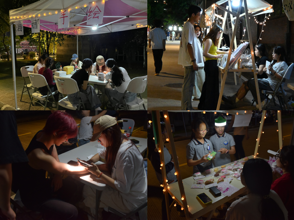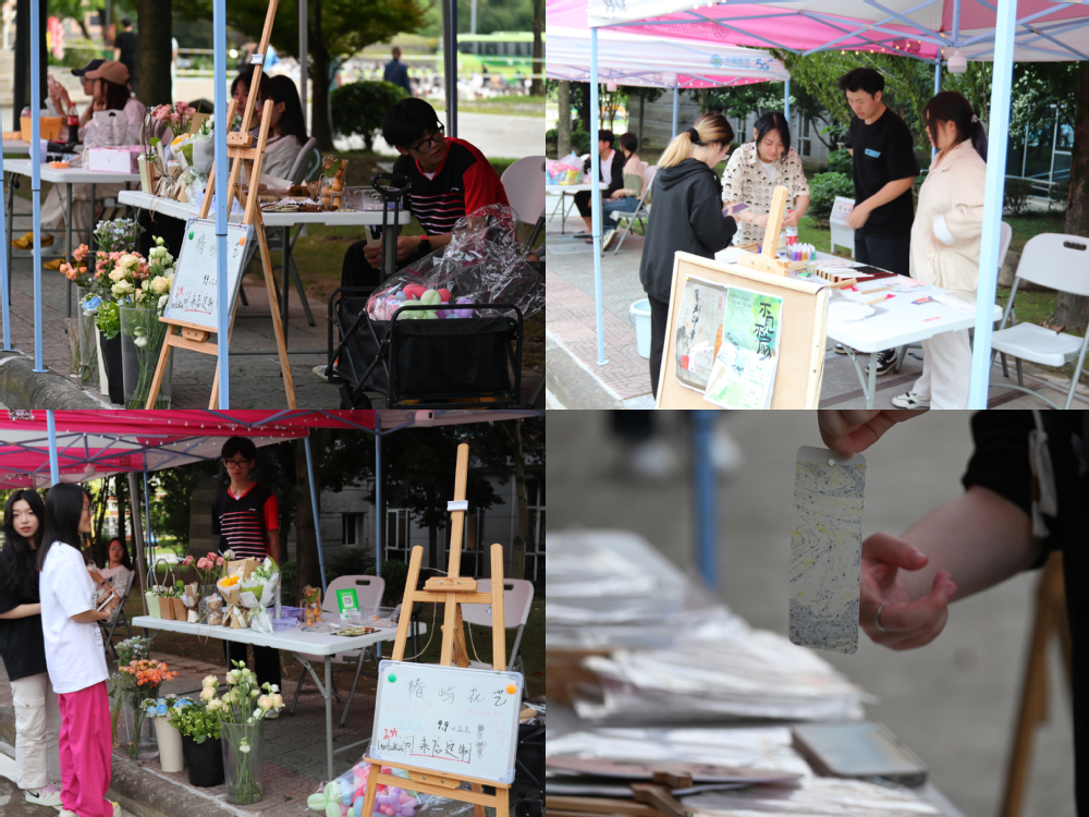 活動前期通過“分享”“體驗”“輕松”的形式,招募各類攤位12個?;顒蝇F(xiàn)場融合物物交換、歌曲演奏、互動抽獎等方式,進行創(chuàng)意售賣,琳瑯滿目的商品從手工藝品到創(chuàng)意小物,從美食小吃到文化書籍。攤位前的畢業(yè)生們紛紛駐足,挑選心儀的商品,或品味美食,或與朋友交流,享受著這難得的悠閑時光。