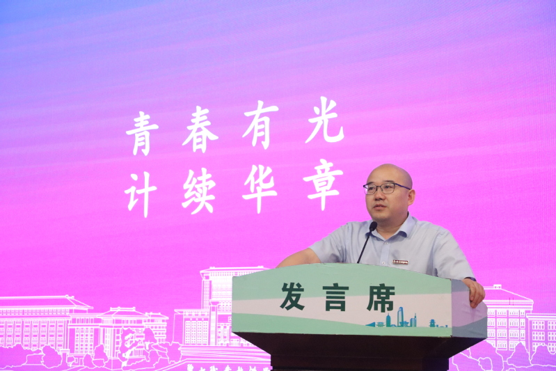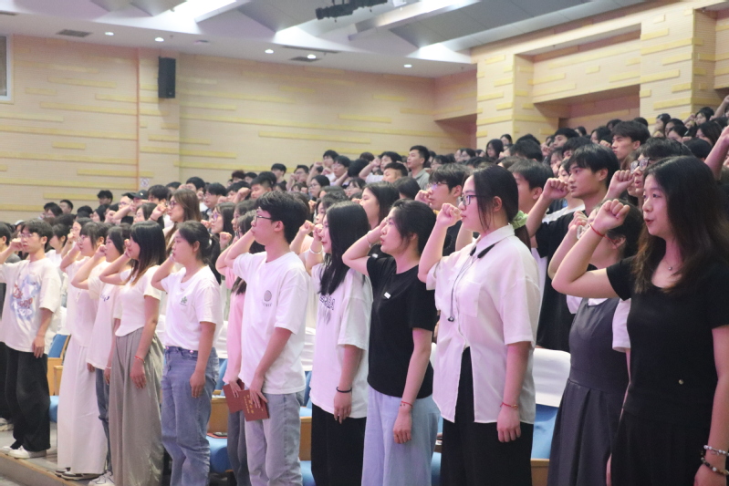 隨后,全體畢業(yè)生在國(guó)家獎(jiǎng)學(xué)金獲得者趙佳辰同學(xué)的帶領(lǐng)下鄭重做廉潔從業(yè)宣誓,倡導(dǎo)畢業(yè)生守規(guī)矩底線,秉浩然正氣,做清白之人。 畢業(yè)生代表趙烊烊代表全體畢業(yè)生發(fā)言,她向辛勤付出的老師表達(dá)最衷心的感謝,她希望學(xué)弟學(xué)妹堅(jiān)定自我認(rèn)知,保持學(xué)習(xí)的熱情和求知的心態(tài),克服對(duì)未知的焦慮,做逐夢(mèng)人生的追光者。