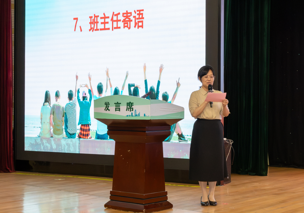 隨后,全體畢業(yè)班班主任向畢業(yè)生們送上真摯的期盼,愿同學(xué)們不負(fù)期望,保持初心,帶著祝福奔向遠(yuǎn)方,創(chuàng)造無(wú)限可能。室內(nèi)2131班包佩棋同學(xué)作為畢業(yè)生代表發(fā)言,她回顧了從入學(xué)到畢業(yè)的一千多個(gè)日日夜夜,感謝母校的培養(yǎng),呼吁畢業(yè)生們不忘“樹(shù)木樹(shù)人,行知并進(jìn)”的校訓(xùn),成為有才有德,敢挑大任的新時(shí)代棟梁。