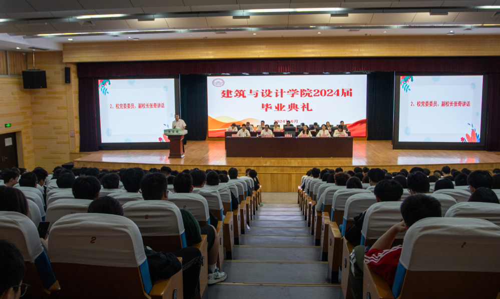 6月4日上午,建筑與設(shè)計(jì)學(xué)院2024屆畢業(yè)典禮在學(xué)校第一報(bào)告廳隆重舉行,校黨委委員、副校長(zhǎng)張奇,學(xué)院班子成員、全體畢業(yè)班班主任、537名畢業(yè)生參加典禮。典禮在莊嚴(yán)的國(guó)歌聲中拉開(kāi)序幕。