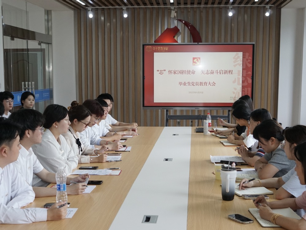 為進一步強化畢業(yè)生黨員黨性教育,提升黨性修養(yǎng),電子信息學院于近日召開2025屆畢業(yè)生黨員黨性教育大會暨“綠芯潮”第十二期主題黨日活動。學院黨總支書記舒佳、黨總支副書記朱吳一、黨支部委員及全體輔導員出席會議,13名2025屆畢業(yè)生黨員參加會議,會議由朱吳一主持。
