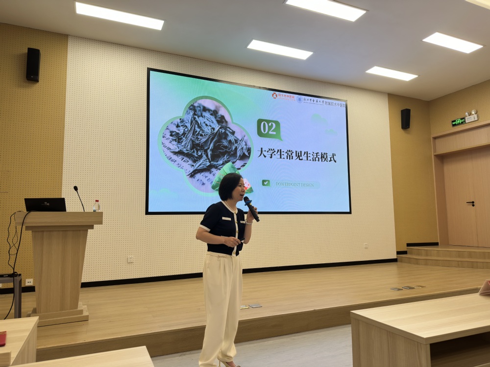 陳慧妙為何建群醫(yī)生頒發(fā)聘書,正式聘請其為學院“青春健康導師”。何醫(yī)生深耕健康管理領域二十余載的資深專家,不僅身兼浙江省健康管理師協會理事等學術職務,更斬獲多項省級科研成果。她以《青春護航,打造元氣大學生活》作為主題,憑借豐富的專業(yè)知識和大量實際案例,為同學們提供了切實可行的建議。講座現場氣氛熱烈,同學們認真聆聽,不時記錄要點。