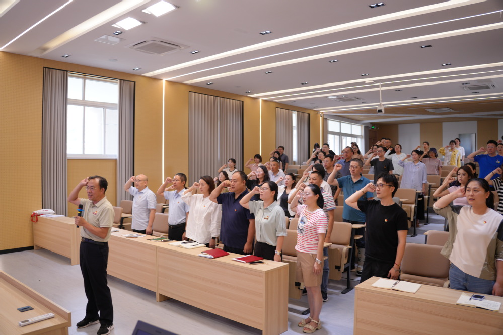 觀看完《初心:92歲游本昌宣誓入黨》“七一”特別節(jié)目后,全院黨齡最長(zhǎng)的梁偉樣同志帶領(lǐng)全體黨員,面向黨旗莊嚴(yán)列隊(duì),緊握右拳重溫入黨誓詞?!拔抑驹讣尤胫袊?guó)共產(chǎn)黨……隨時(shí)準(zhǔn)備為黨和人民犧牲一切,永不叛黨!”響徹活動(dòng)現(xiàn)場(chǎng)的鏗鏘誓言,既是對(duì)入黨初心的回望,也是對(duì)黨的事業(yè)的忠誠(chéng)宣示,進(jìn)一步強(qiáng)化了黨員的身份認(rèn)同與責(zé)任擔(dān)當(dāng)。41名年輕干部以支部為單位圍繞“我為什么入黨,我與非中共黨員有什么區(qū)別;我為什么工作,我與體制外人員有什么區(qū)別”主題展開(kāi)了深入交流研討。會(huì)上,數(shù)智財(cái)貿(mào)黨總支組織開(kāi)展“黨員一句話承諾”及“師德師風(fēng)每月一測(cè)”等活動(dòng)。